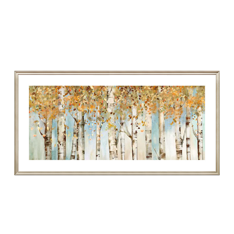 美式乡村白桦林风景客厅s装饰画饭厅壁画卧室床头画横版实木框挂