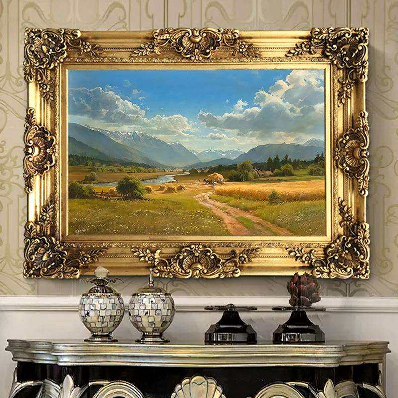 世界名画美式乡村田园装饰画客厅玄关挂画欧式丰收风景油画高级感