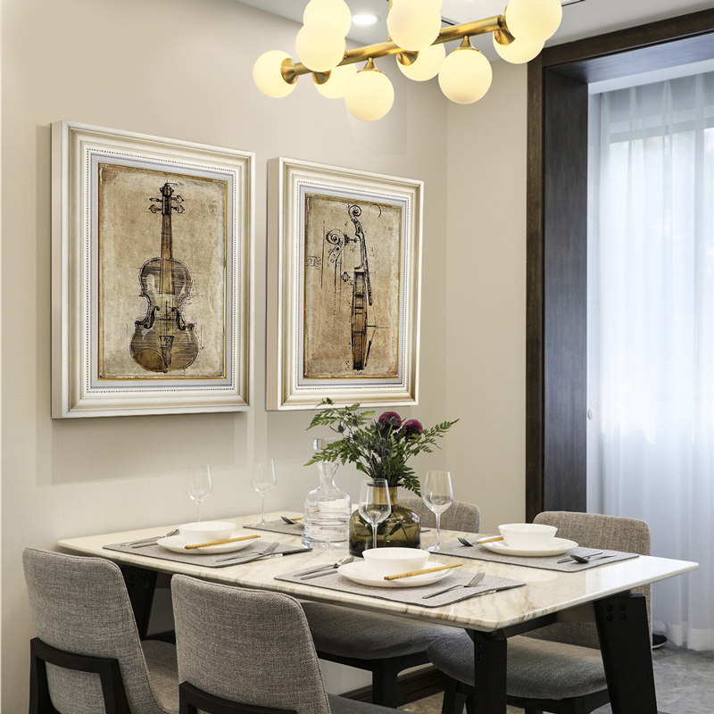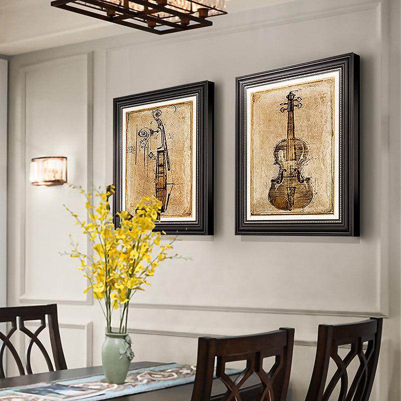 欧式餐厅装饰画抽象简约t卧室墙画美式乡村复古墙画客厅小提琴挂