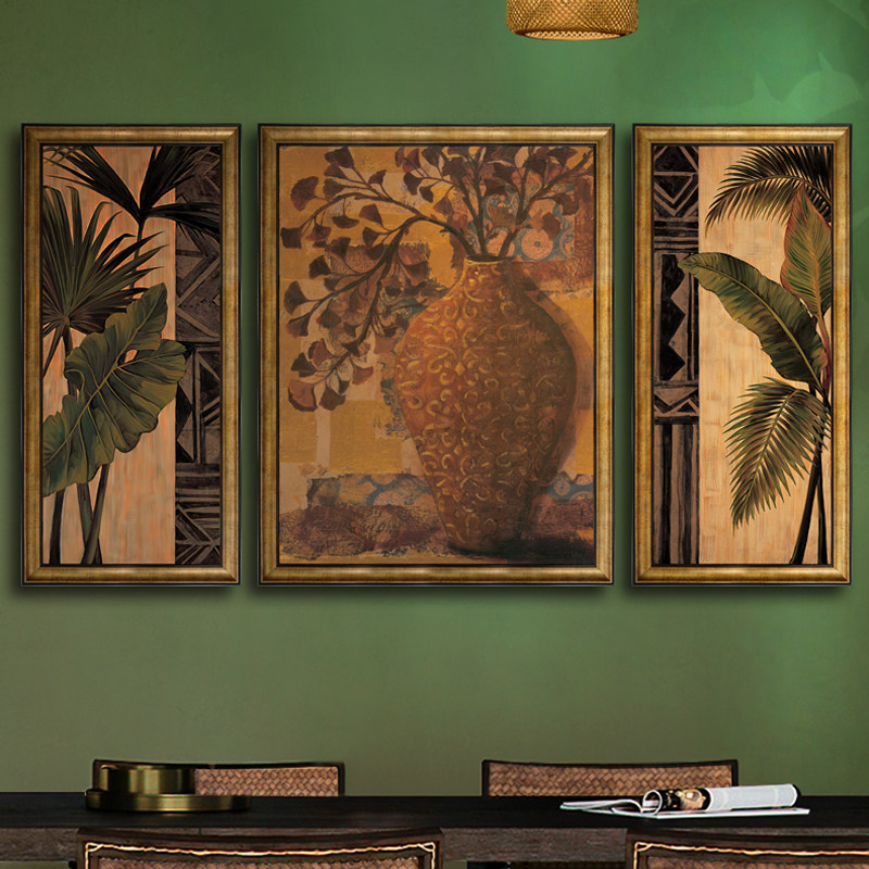 东南亚风格复古花卉客厅装饰画泰式酒店餐厅民宿挂画美式乡村壁画