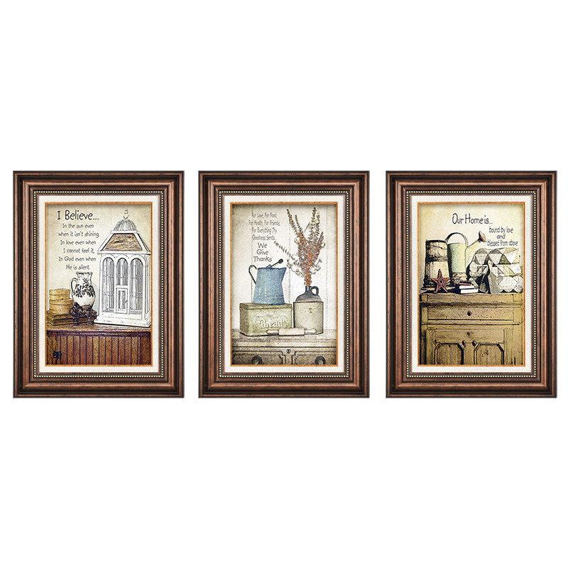 美式乡村装饰画 客厅沙发背景墙三联画 简N美大气餐厅卧室挂画壁