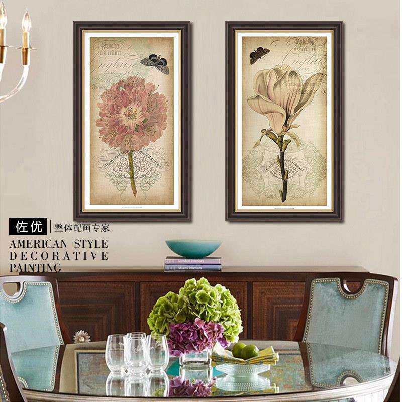 hh美式乡村餐厅素雅挂画客厅走廊壁画欧式植物花卉简美玄关装饰画
