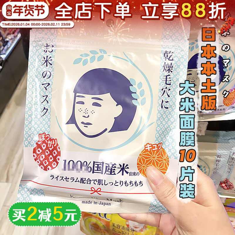 日本石泽研究所毛穴抚子稻米大米面膜补水保湿紧致收缩毛孔10片装