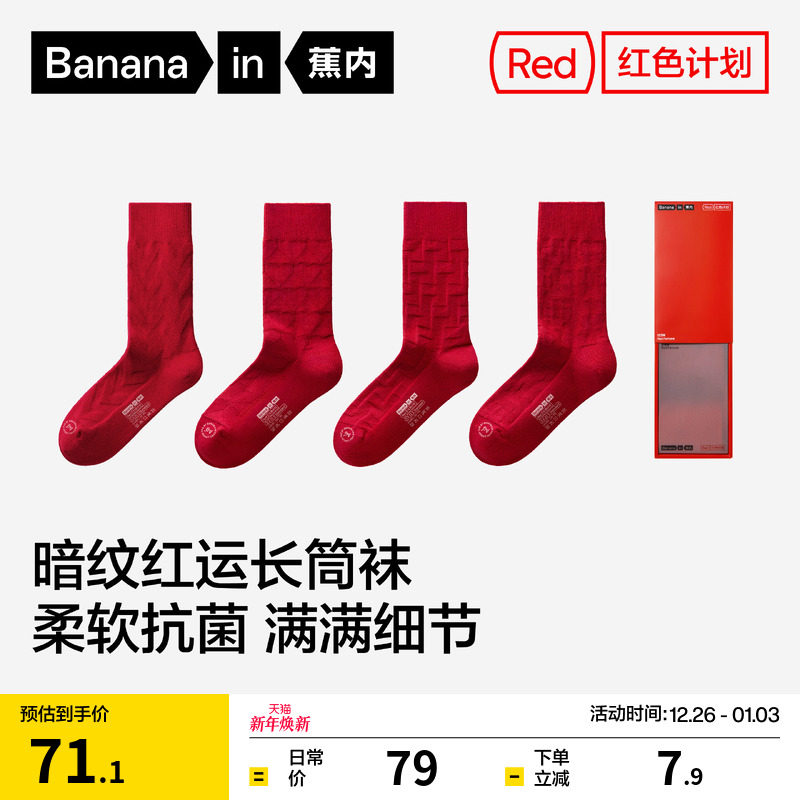 蕉内红色计划311S男女情侣袜子结婚长袜本命年短袜马年新款棉袜