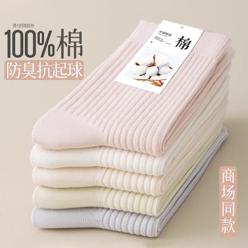 全棉时代袜子女100%纯棉袜子女士中筒袜长筒袜抗菌短袜女款防臭袜