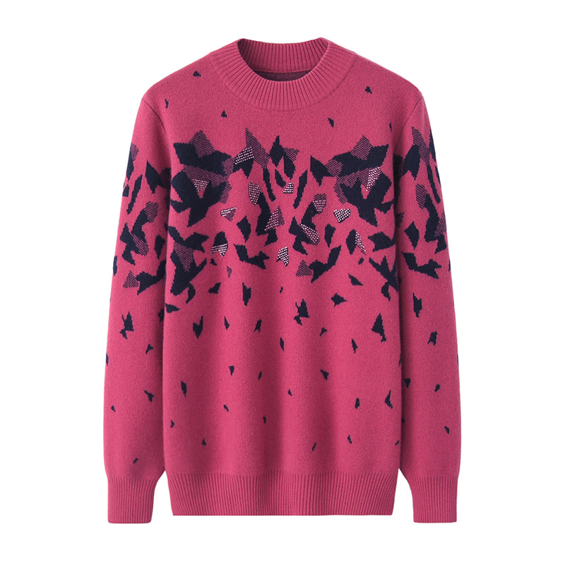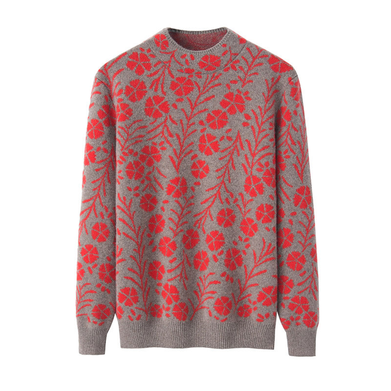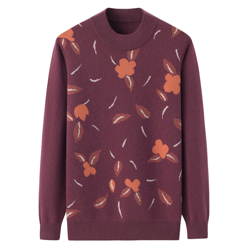 阿绒源100山羊绒女套衫半高领提花针织衫中老年宽松贴身穿妈毛衣