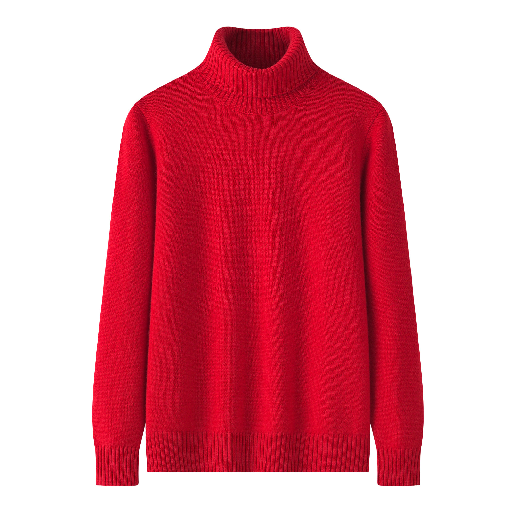 阿绒源100山羊绒衫女套衫半高领红色抽条修身打底衫贴身百搭毛衣