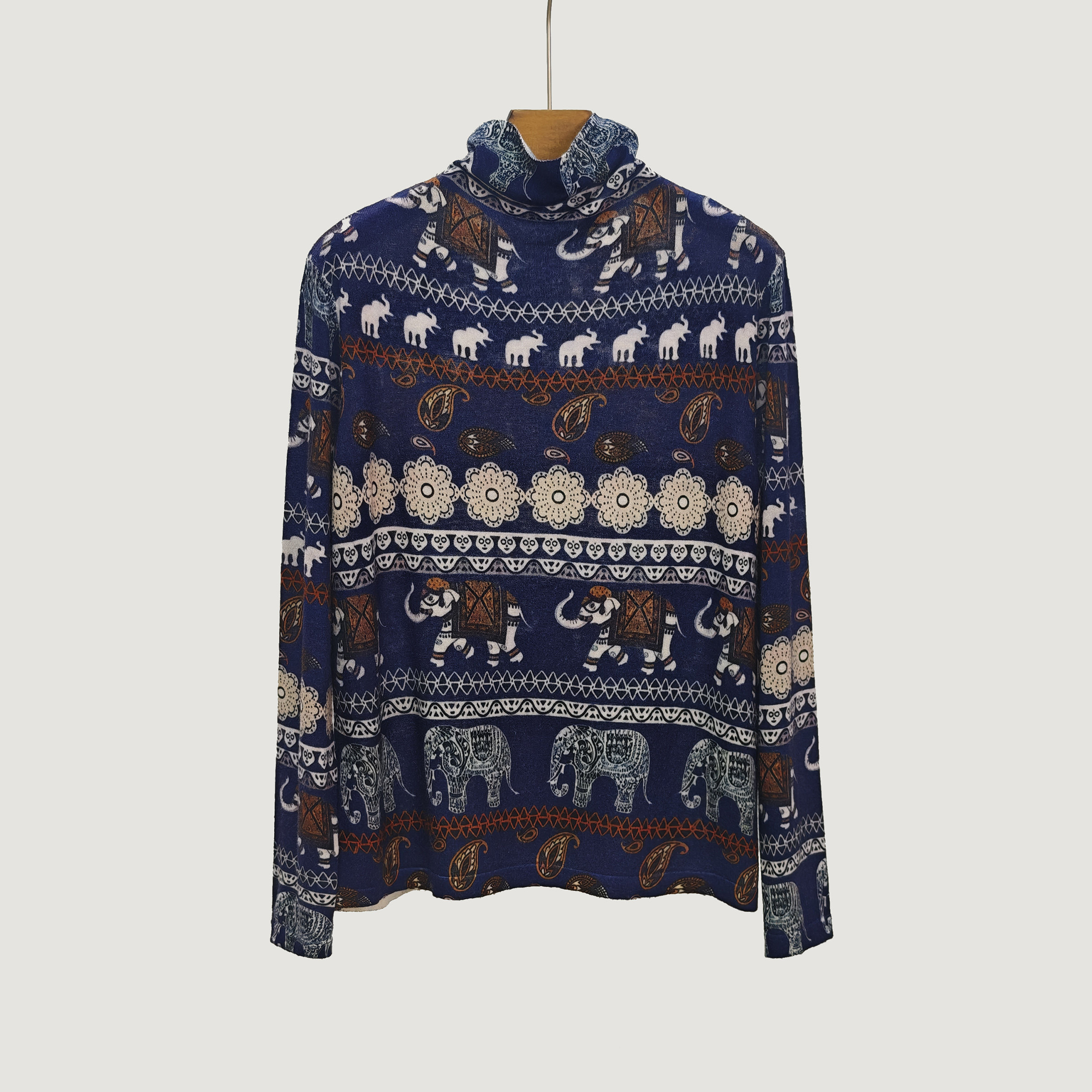 2025新款100%超细水溶羊毛高领印花针织打底衫女薄款宽松贴身不扎