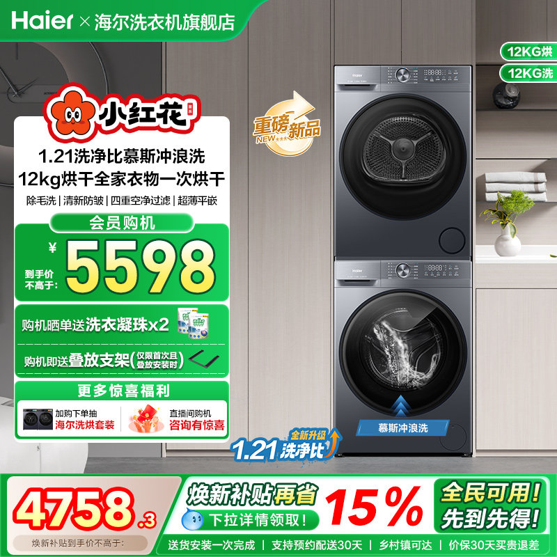 【云溪12KG】海尔新品滚筒洗烘套装洗衣机家用全自动双擎热泵55dw