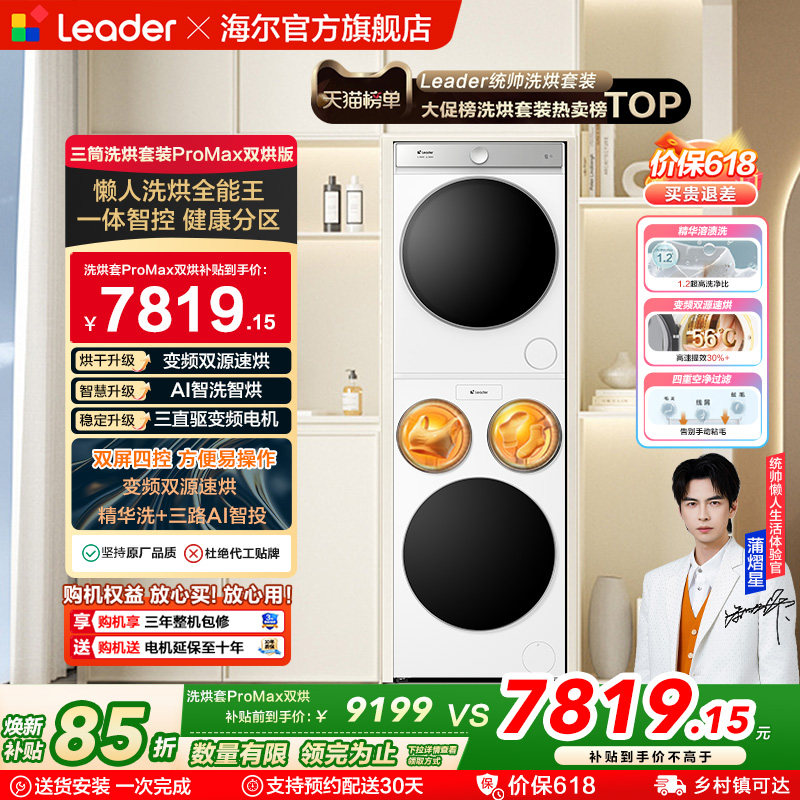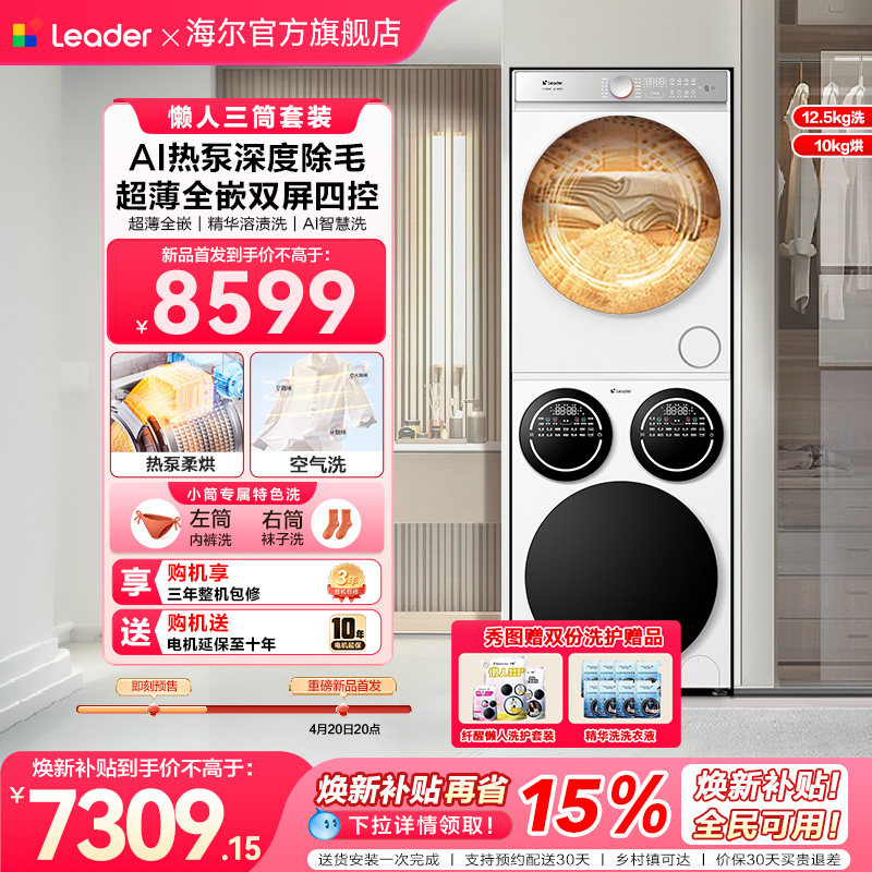 以旧换新海尔leader懒人三筒洗衣机双烘版全自动洗烘套装ProMax版