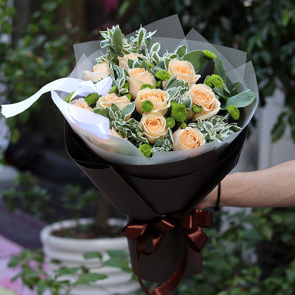 情人节鲜花速递同城香槟玫瑰花束成都重庆上海广州女友生日配送店