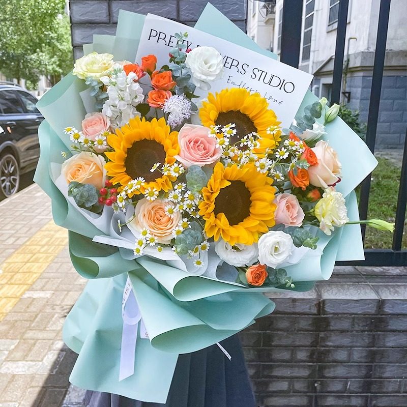 情人节鲜花速递同城向日葵香槟玫瑰花束女友生日毕业礼物配送花店