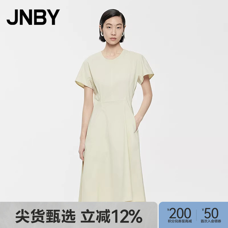 JNBY/江南布衣夏季女装连衣裙棉混纺X型通勤伞裙气质圆领短袖裙子
