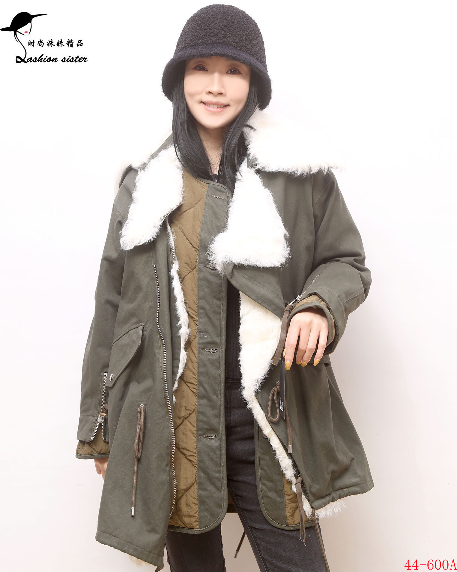 - 军绿色棉衣女 毛领
