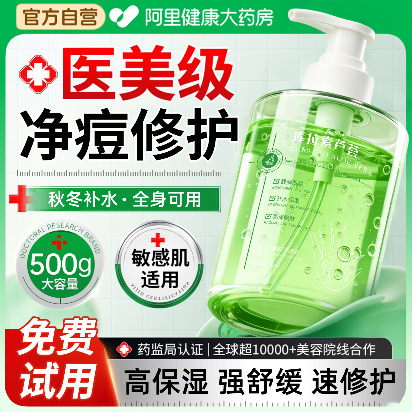 500g库拉索芦荟胶补水保湿舒护凝胶膏淡痘印晒后滋养啫喱面霜大瓶