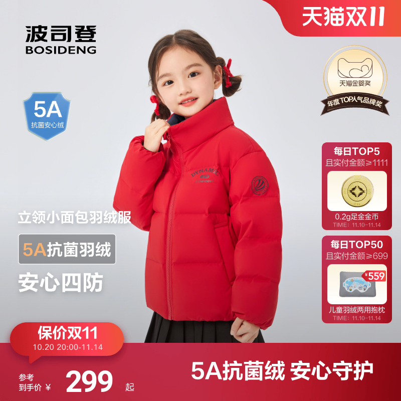 波司登儿童羽绒服男童立领四防女童外套25冬季面包服时尚运动短款
