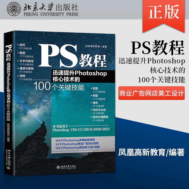 正版2021新书 PS教程 迅速提升Photoshop核心技术的100个关键技能 凤凰高新教育 北京大学出版社9787301325094