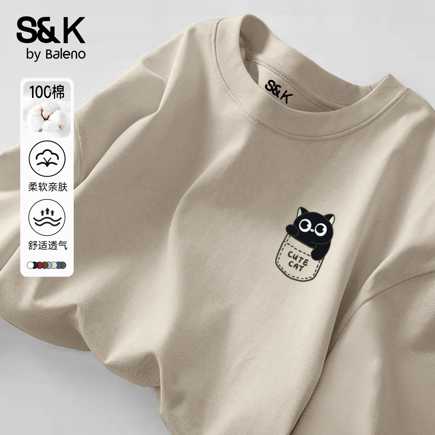 班尼路S&K纯棉圆领长袖t恤男生秋季圆领初高中生打底衫内搭秋衣