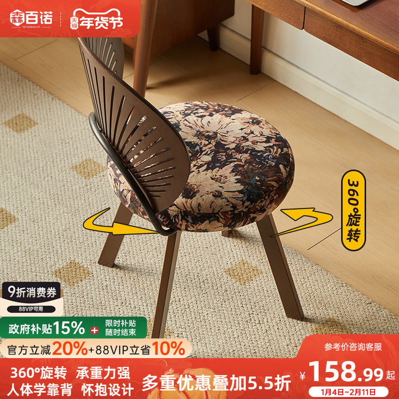 家用客厅餐桌椅餐椅中古风椅子旋转贝壳化妆椅电脑椅书房靠背椅子