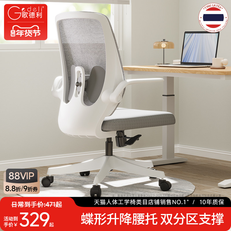 歌德利H1电脑椅办公椅子靠背乳胶椅学生学习椅家用舒适久坐转椅