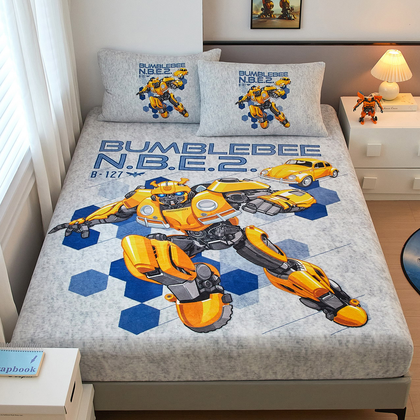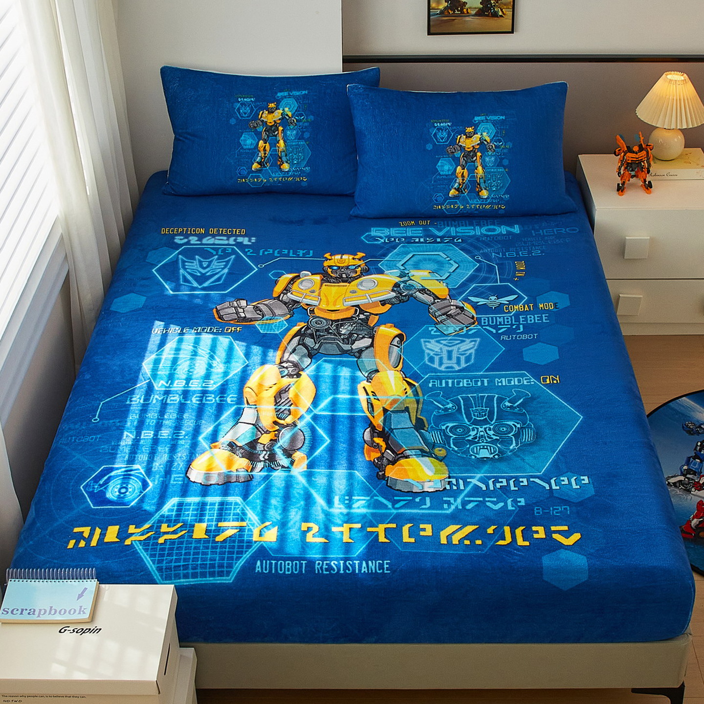 儿童男孩大黄蜂变形金刚牛奶绒床单加厚卡通床笠罩防尘床垫保护套