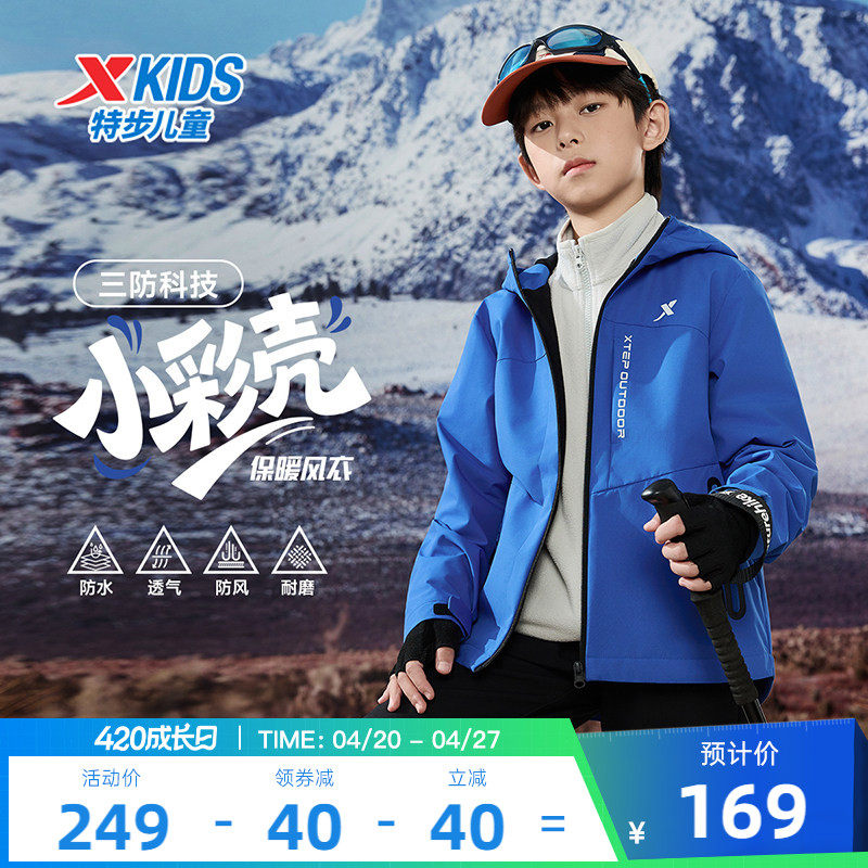 小彩壳|特步童装儿童外套男童冬季户外防风加厚款摇粒绒加绒上衣