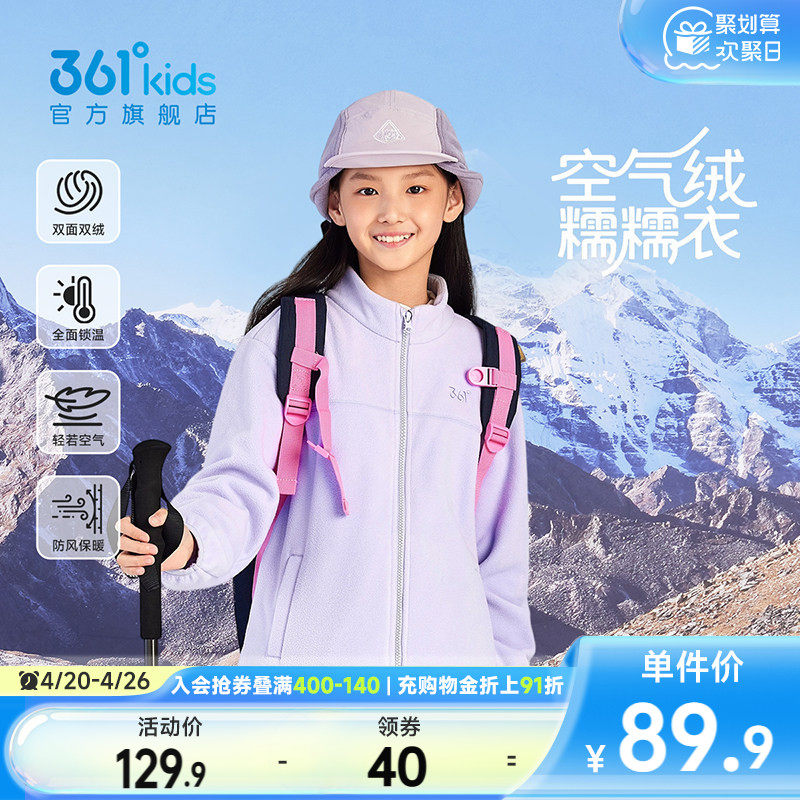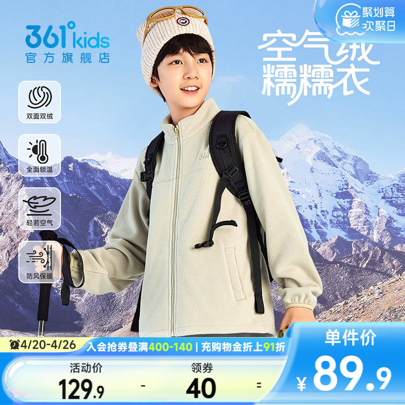 361度童装男童外套儿童针织加厚冬季青少年保暖摇粒绒女童上衣