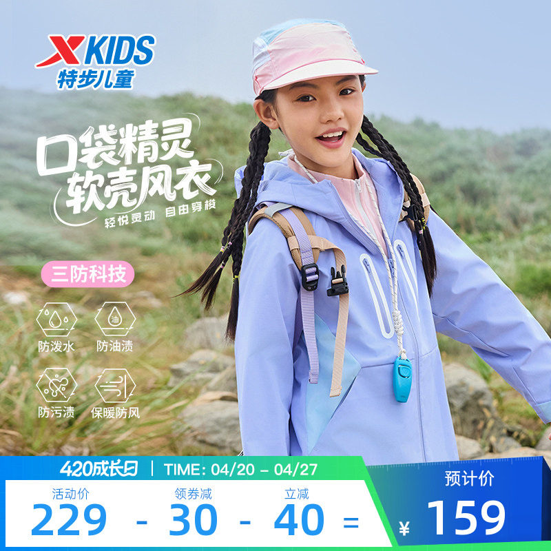 特步童装冬季新款正品女童休闲保暖风衣男童加厚防风轻便上衣外套