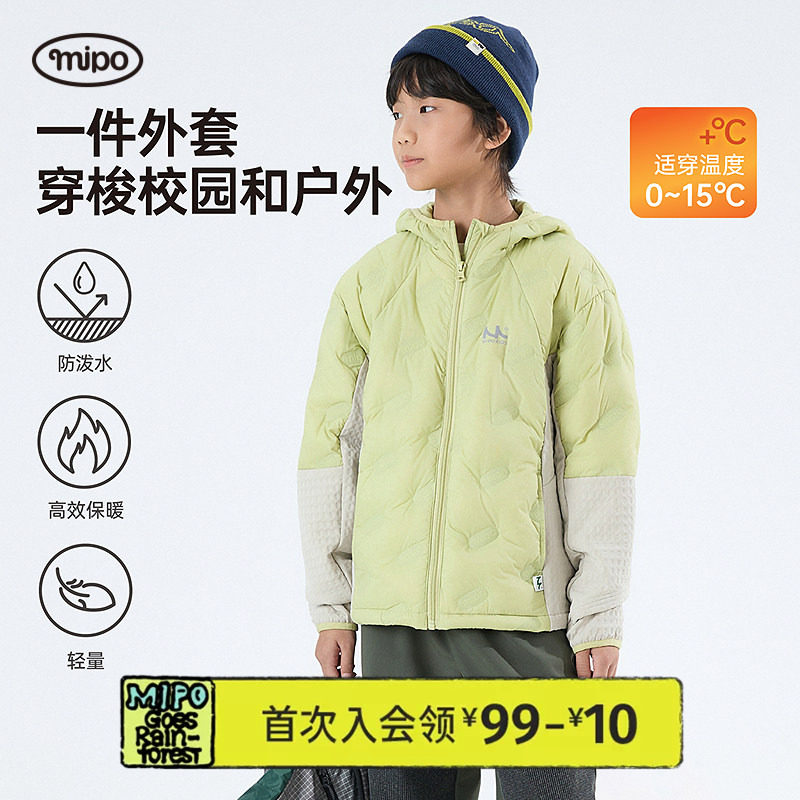 mipo冬季儿童羽绒服轻薄男女童白鸭绒防泼水连帽户外加厚保暖外套