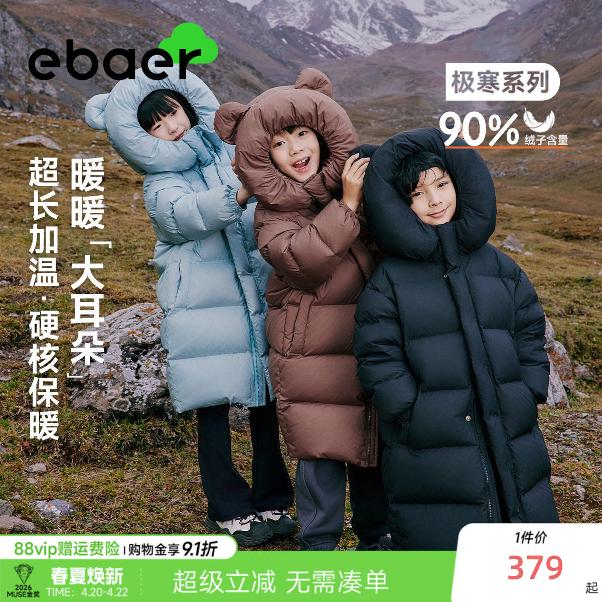 EBAER儿童羽绒服长款加厚冬季新款男童女童90白鸭绒冬装保暖外套