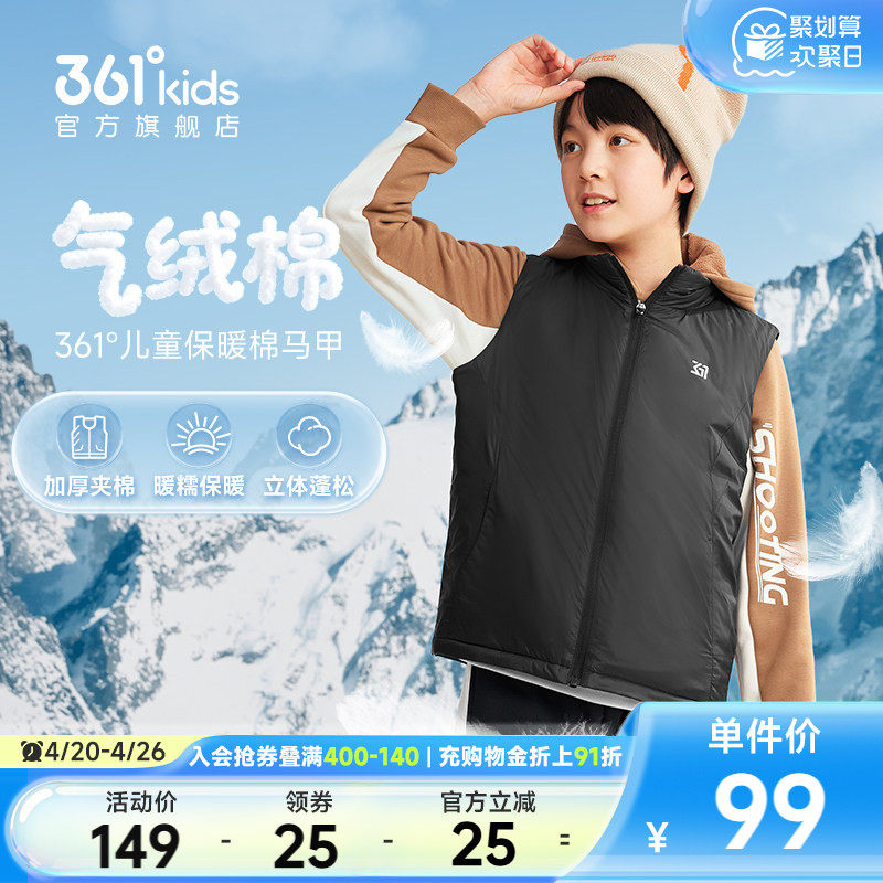 361°童装男女童加厚保暖棉马夹2025冬季新款儿童外套中大童马夹
