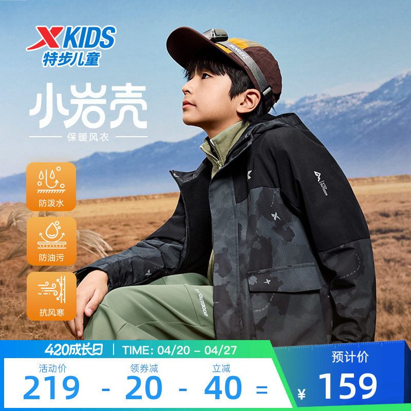 特步童装儿童男童加厚款外套2026冬季新款防风运动风衣冬装男孩子