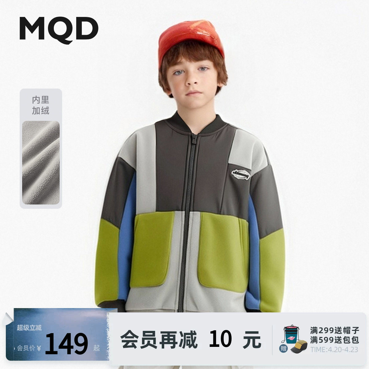 MQD童装男童加厚棒球领外套2025冬季新款儿童撞色拼接保暖运动