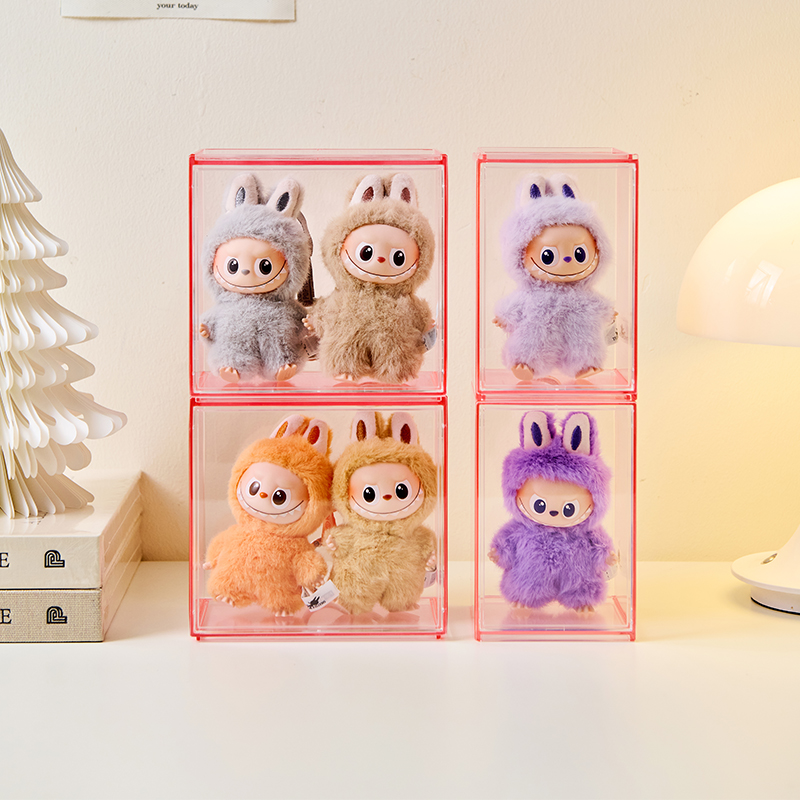 宅萌拉布布透明展示盒磁吸泡泡玛特labubu搪胶手办盲盒收纳展示架
