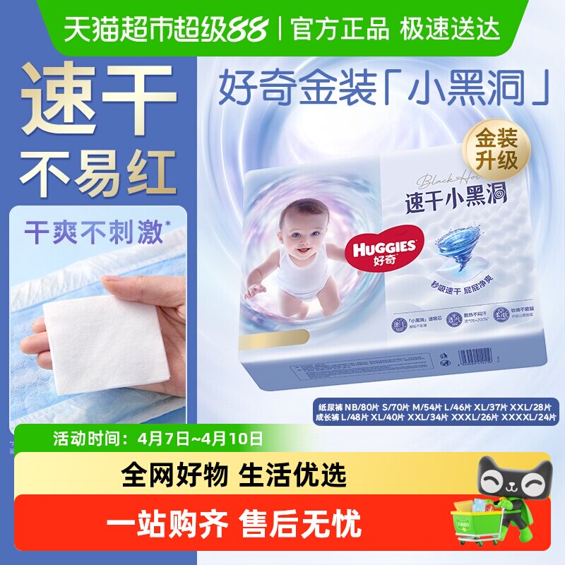 好奇金装纸尿裤拉拉裤NB-4XL速干不易红小黑洞超薄透气婴儿尿不湿