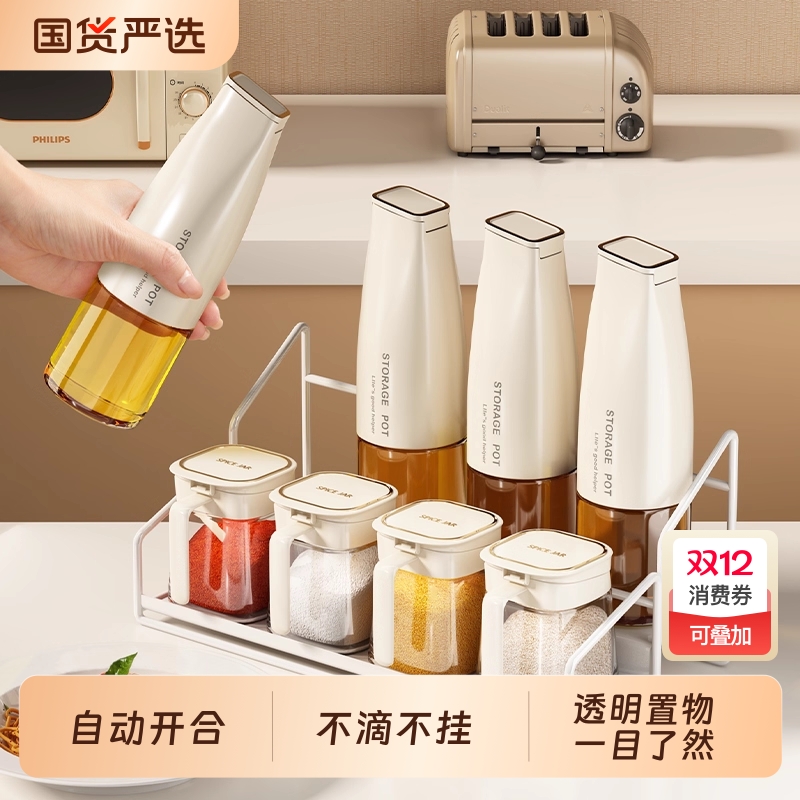 油壶调料罐组合套装厨房家用酱油醋玻璃分装瓶不挂油食品级调味瓶