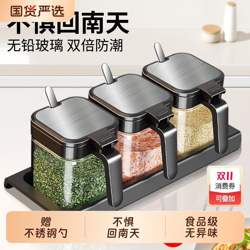 调料罐玻璃组合套装家用密封防潮厨房收纳盒调料瓶调味料调味盐罐