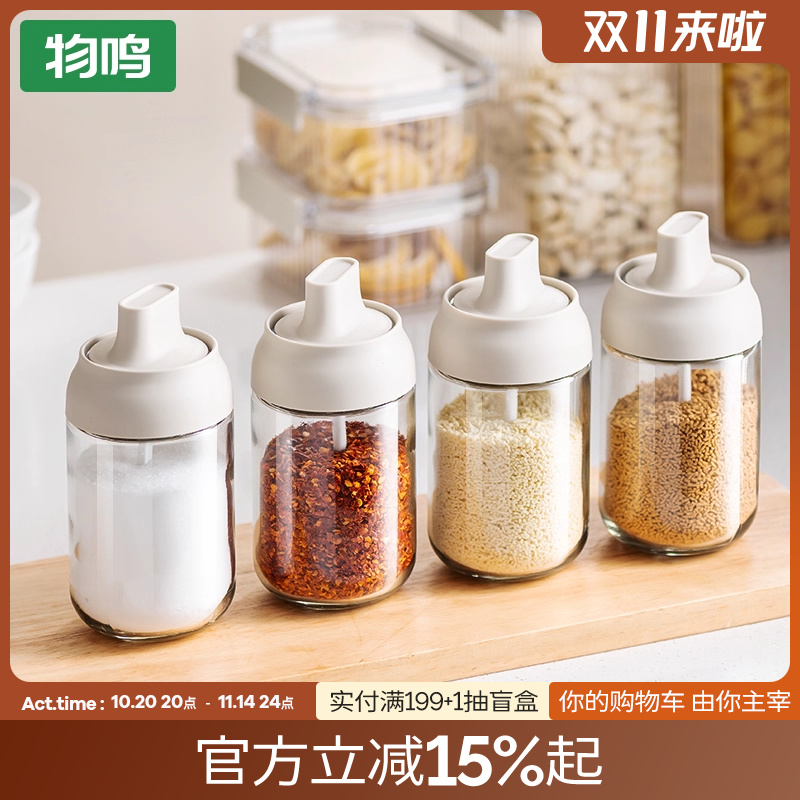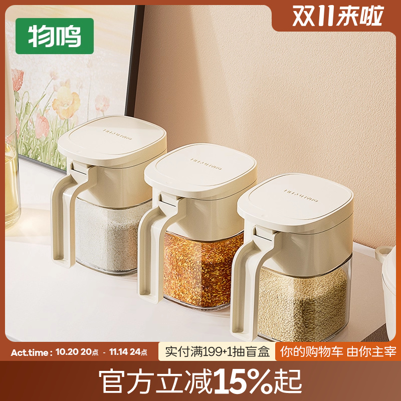 物鸣调料罐套装勺盖一体调料盒厨房家用调料分装瓶油壶盐罐调味罐