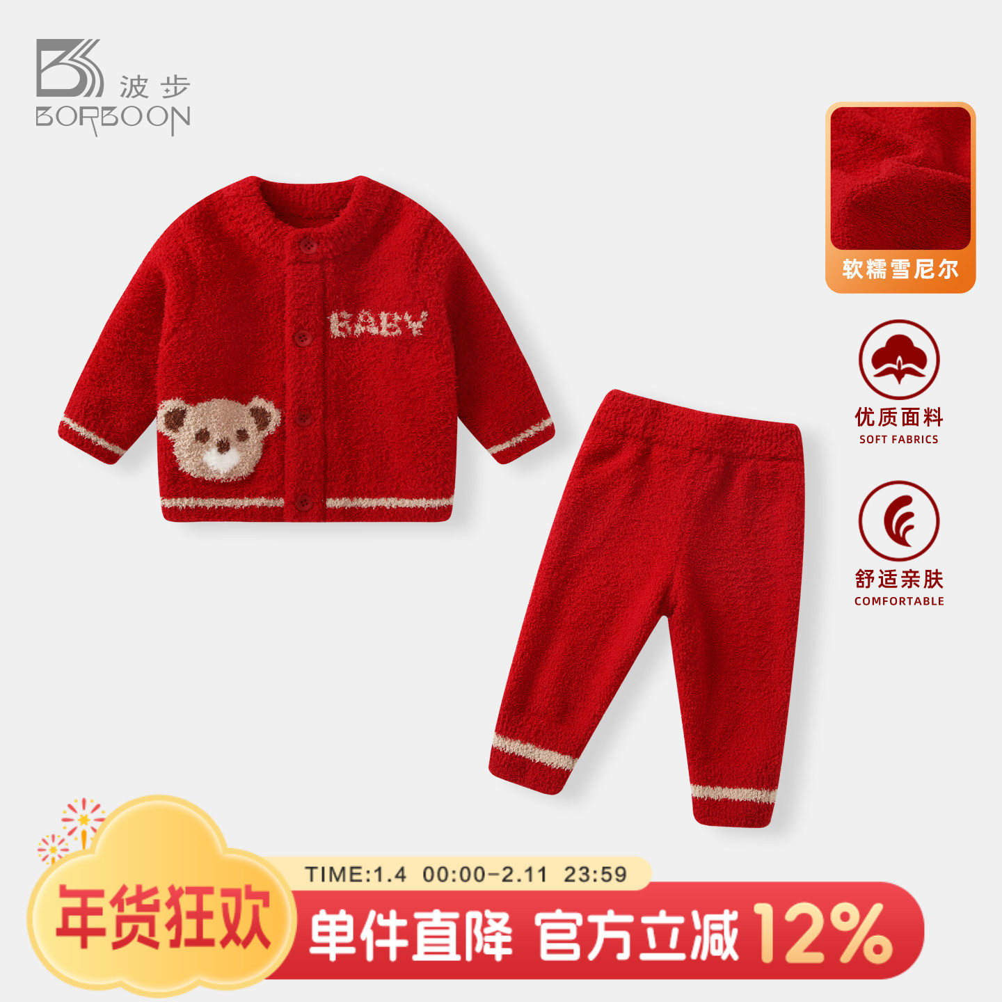 婴儿套装男宝宝新年装喜庆毛衣两件套衣服男童红色冬装过年拜年服