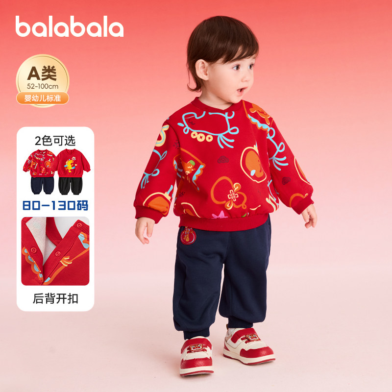 巴拉巴拉婴儿套装男童新年衣服卫衣卫裤红色拜年服2026春装新款女