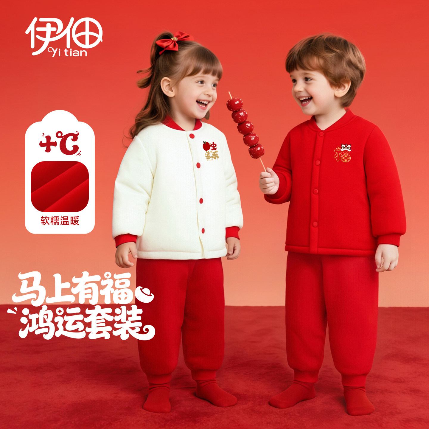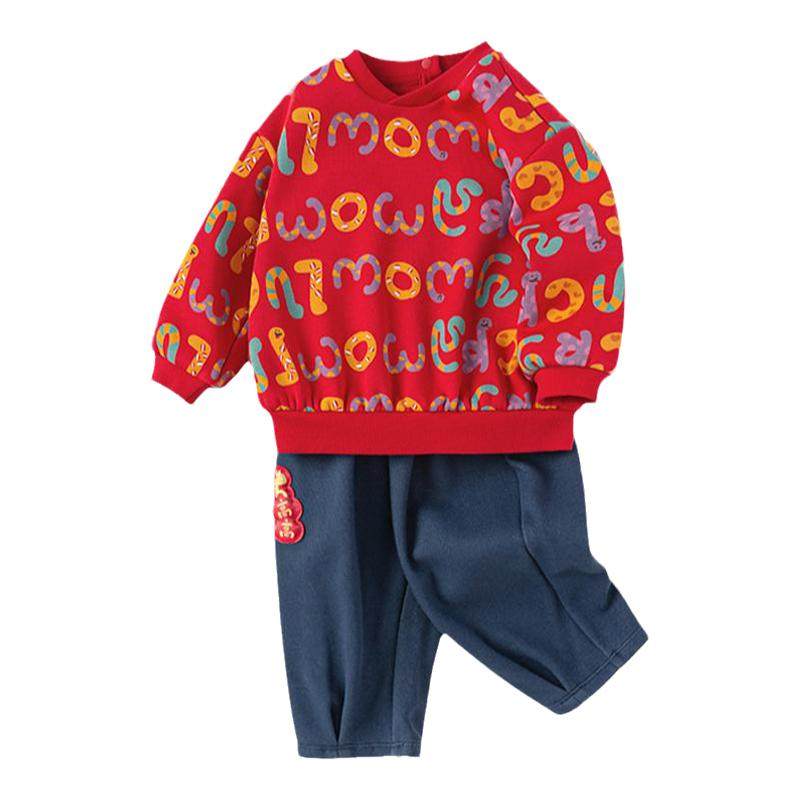 巴拉巴拉婴儿套装男童宝宝红色卫衣儿童洋气拜年服2025冬新款童装