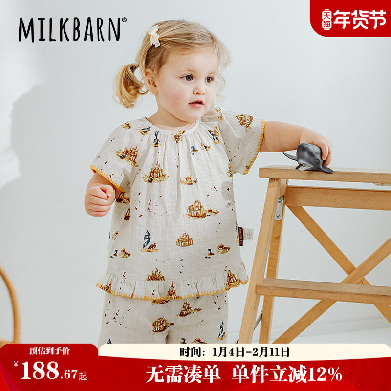 Milkbarn婴儿套装男女宝宝夏季衣服儿童衬衫短袖短裤童装