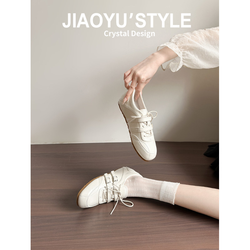 真皮~骄屿内增高芭蕾德训鞋女2025新款复古系带休闲鞋运动小白鞋