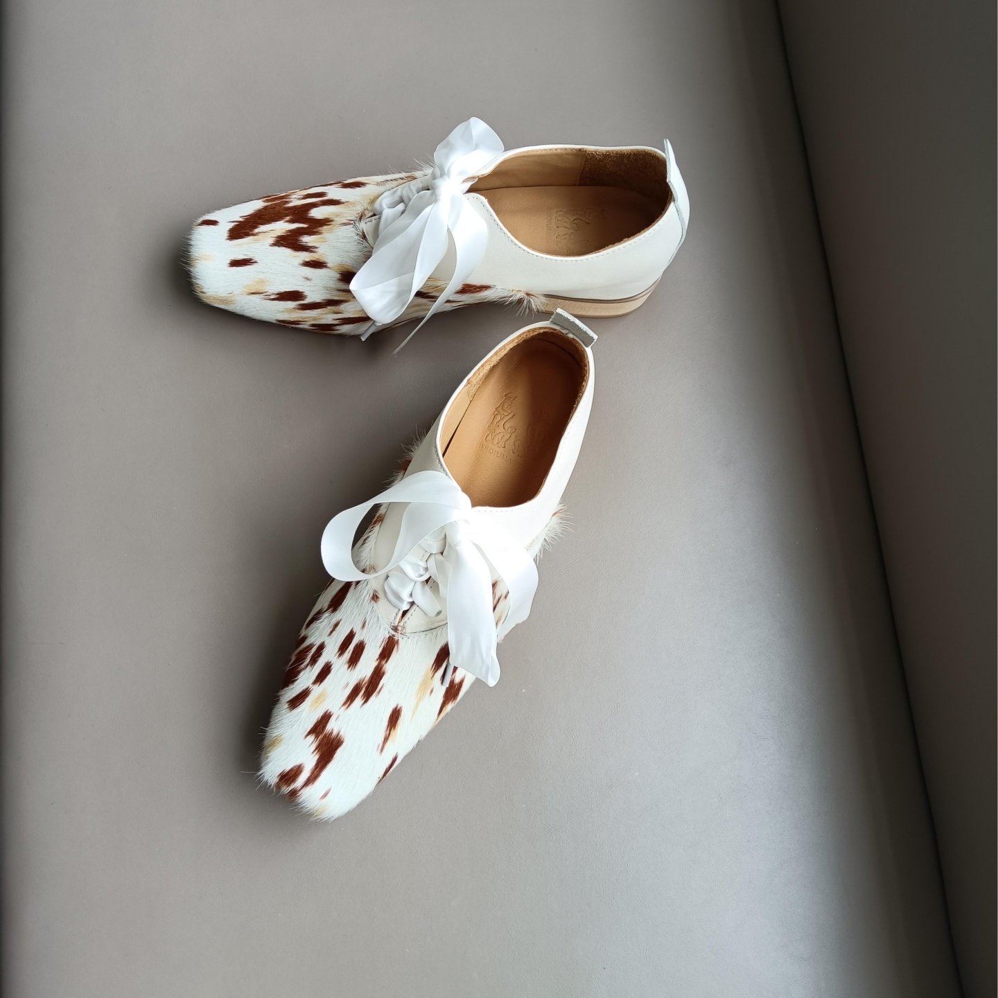 6cm内增高羽纹马毛接软真皮系带防滑中跟单鞋超好看独特漂亮鞋子