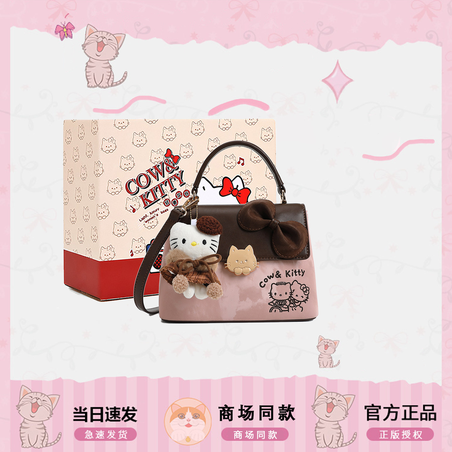 官网正版CowKitty可爱蝴蝶结包包女2025新款超火小众不撞款斜挎包
