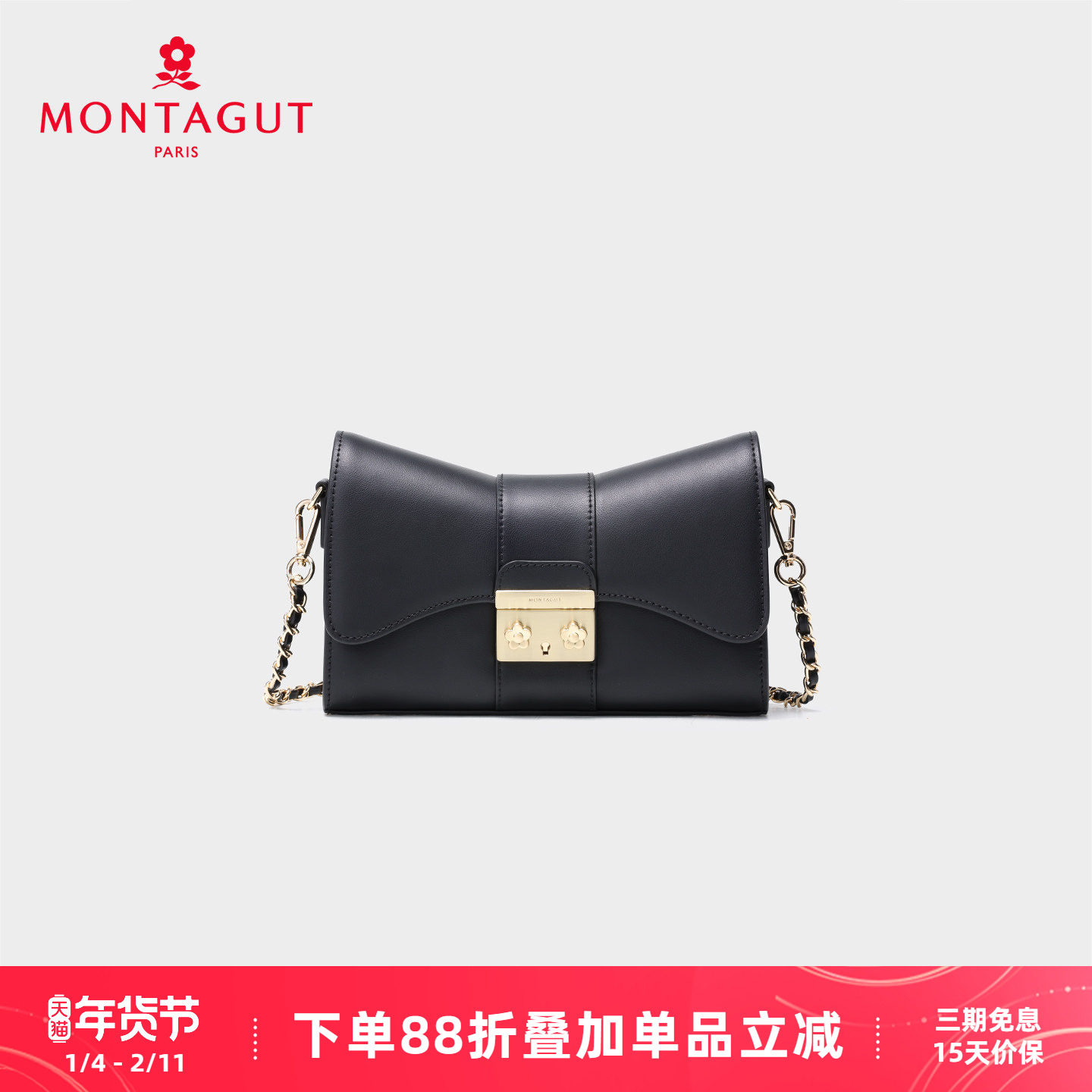 梦特娇女包2026春季新款蝴蝶结包单肩包高级感链条包时尚斜挎包