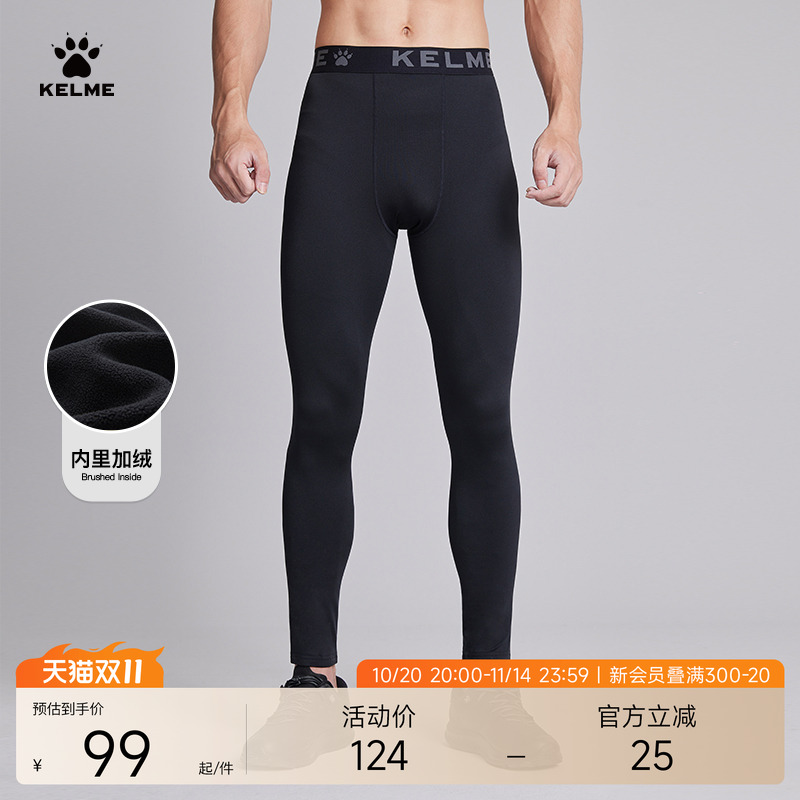 KELME卡尔美加绒紧身裤运动足球训练健身裤男篮球打底跑步压缩裤