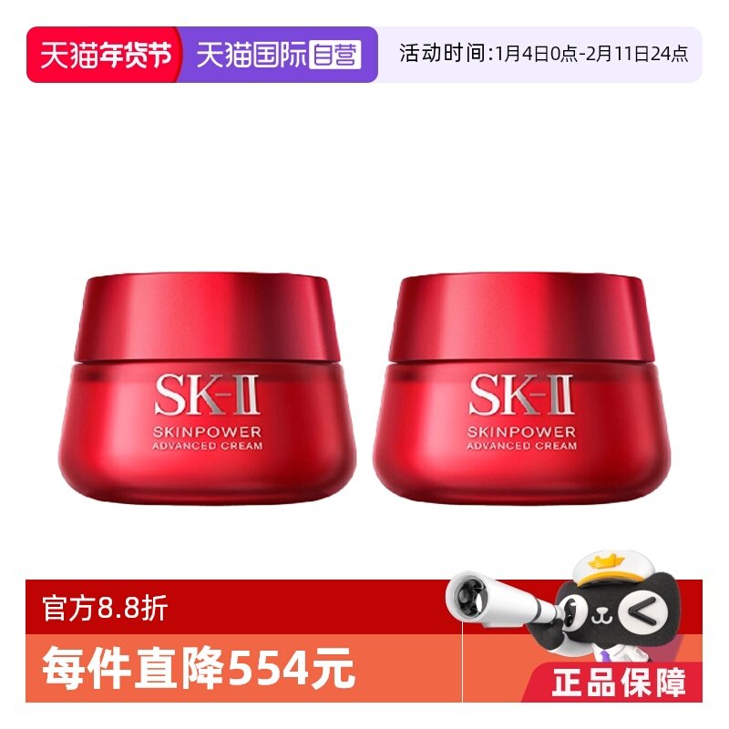 【自营】SK-II大红瓶清爽面霜80g补水紧致透亮精华霜嘭弹细滑双瓶