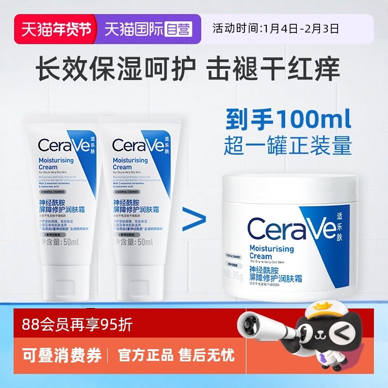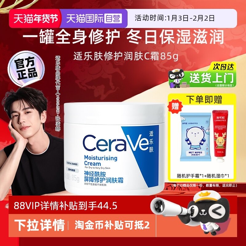 【自营】CeraVe适乐肤C霜补水长效保湿屏障修护酰胺面霜润肤霜85g