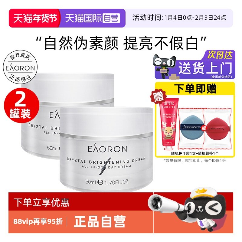 【自营】eaoron澳容素颜霜50ml*2懒人面霜女裸妆遮瑕补水保湿滋润